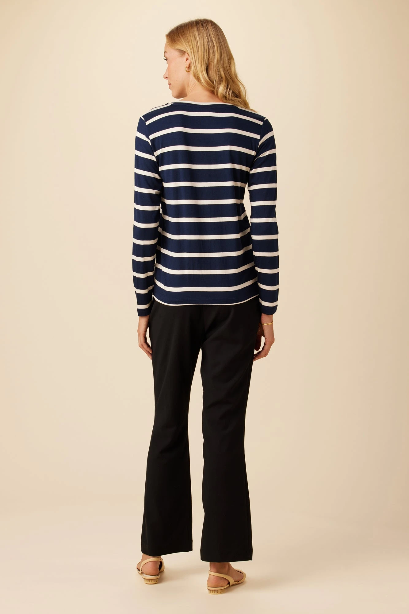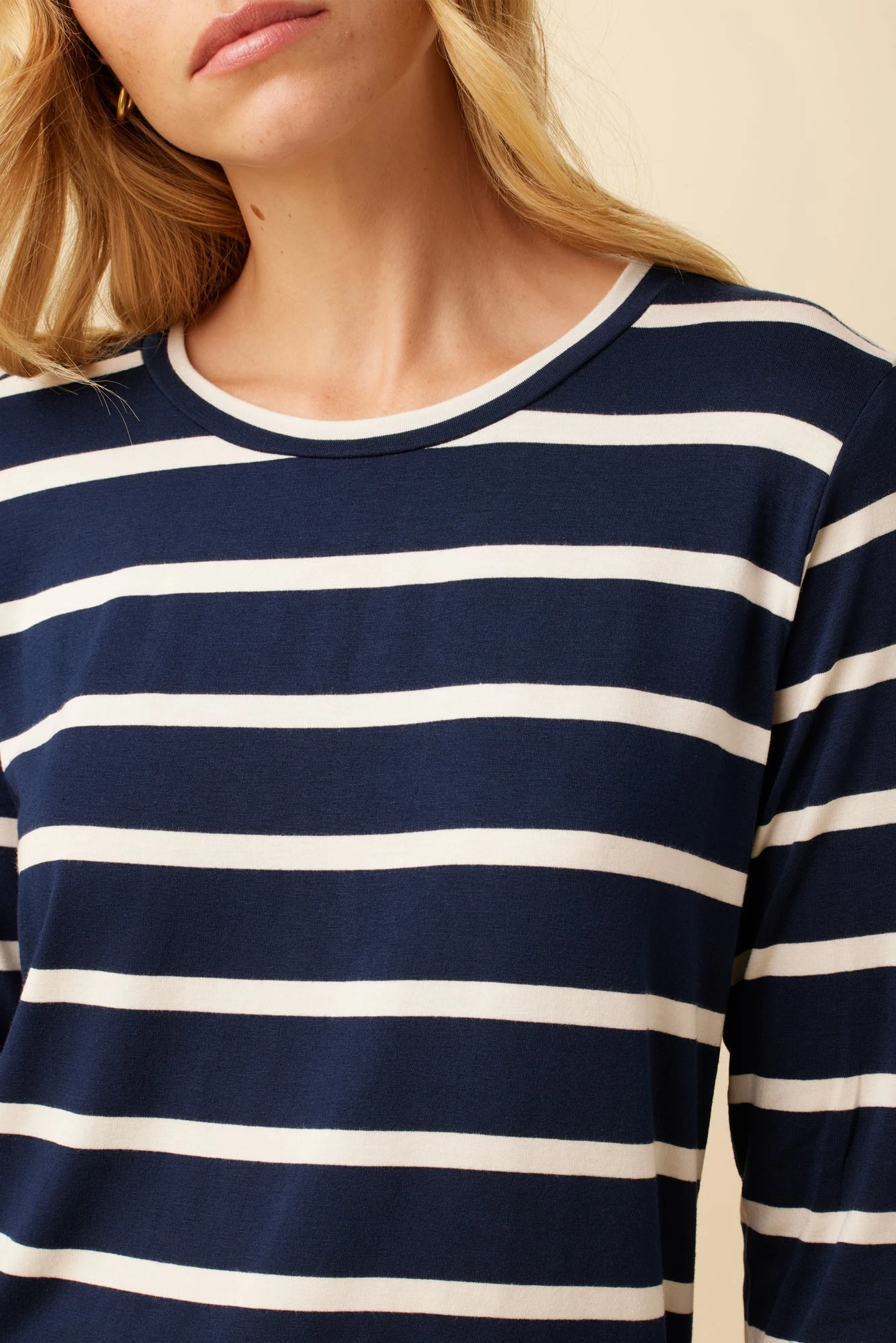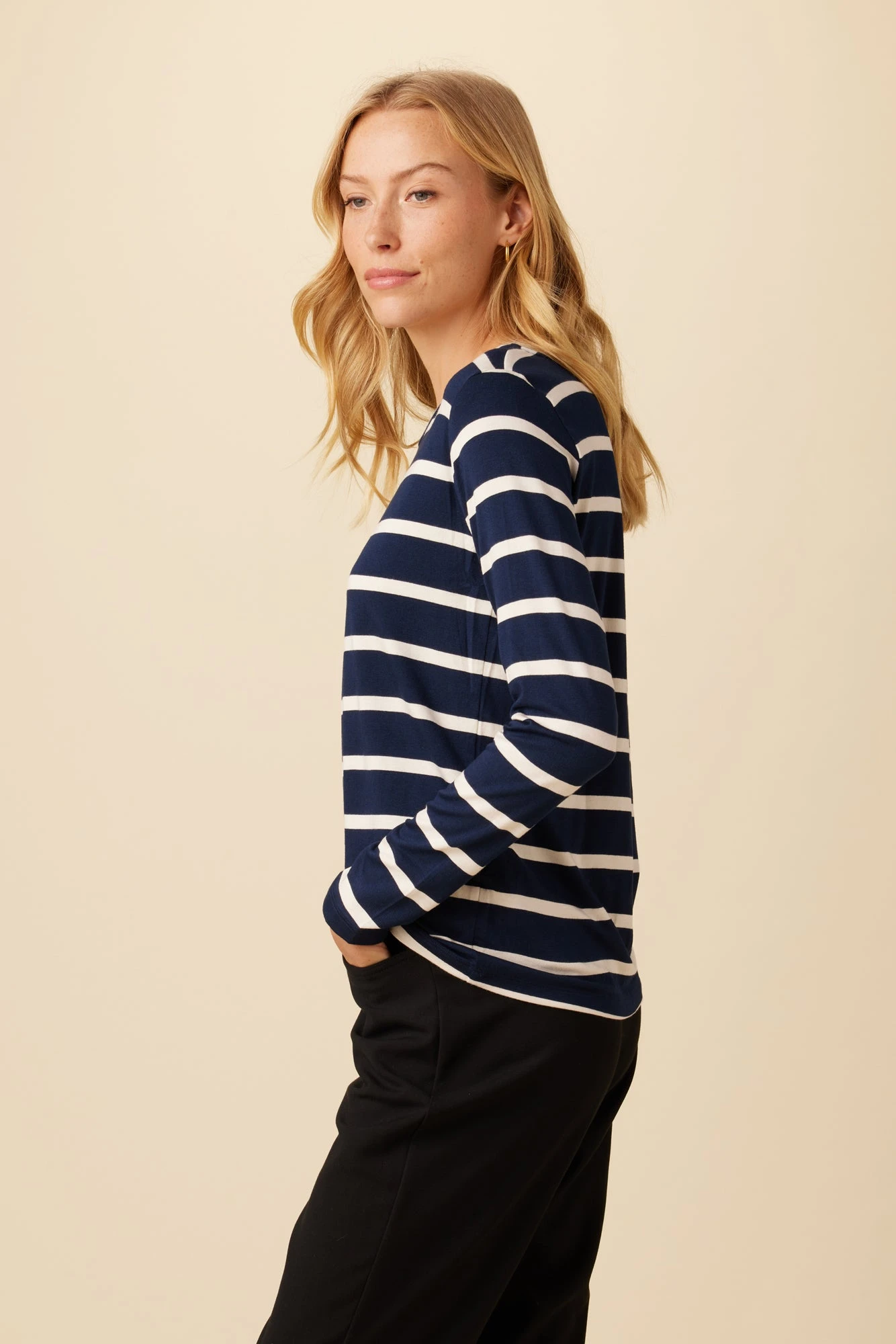 Berkeley Long Sleeve Dream Knit Tee – Navy White Stripe