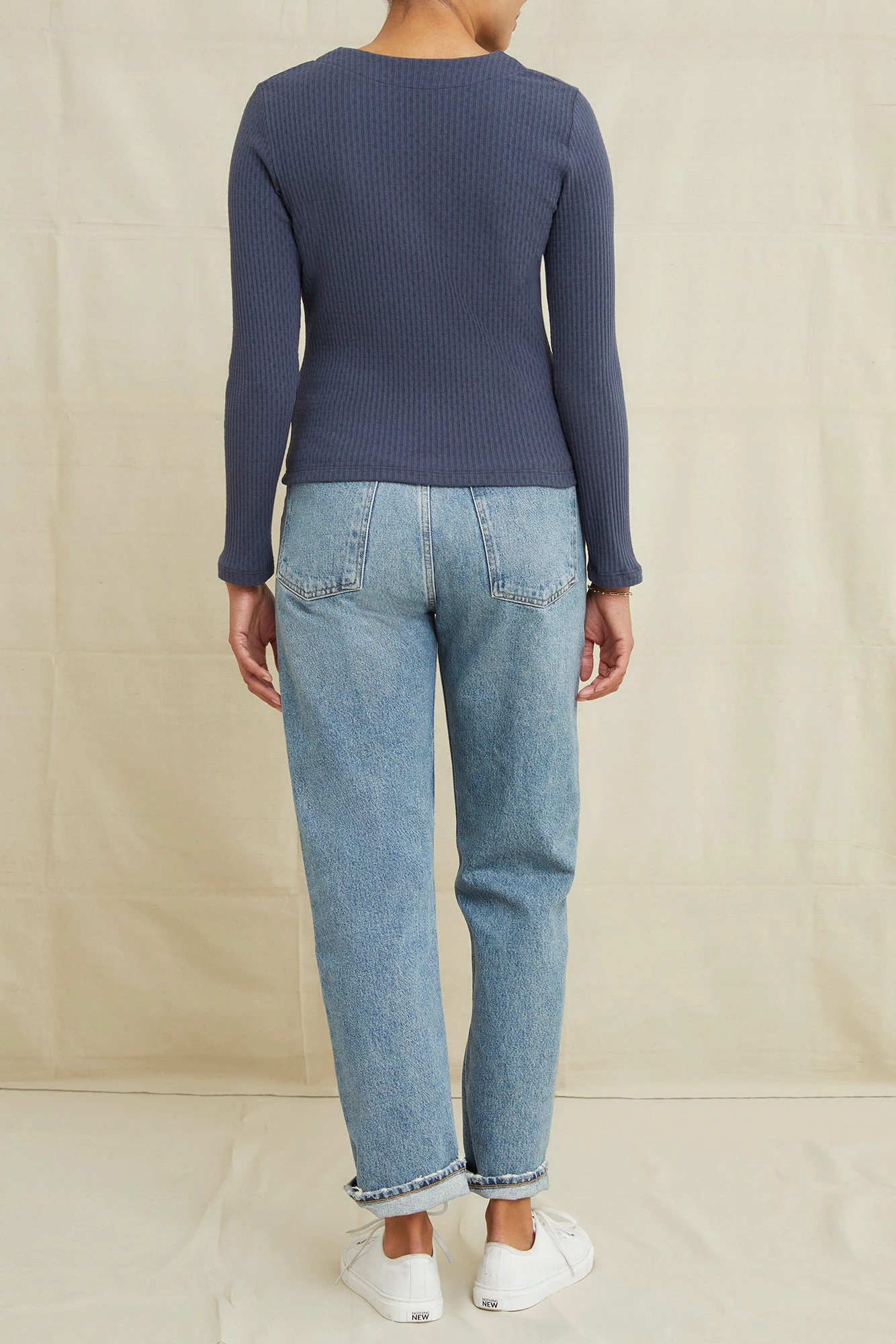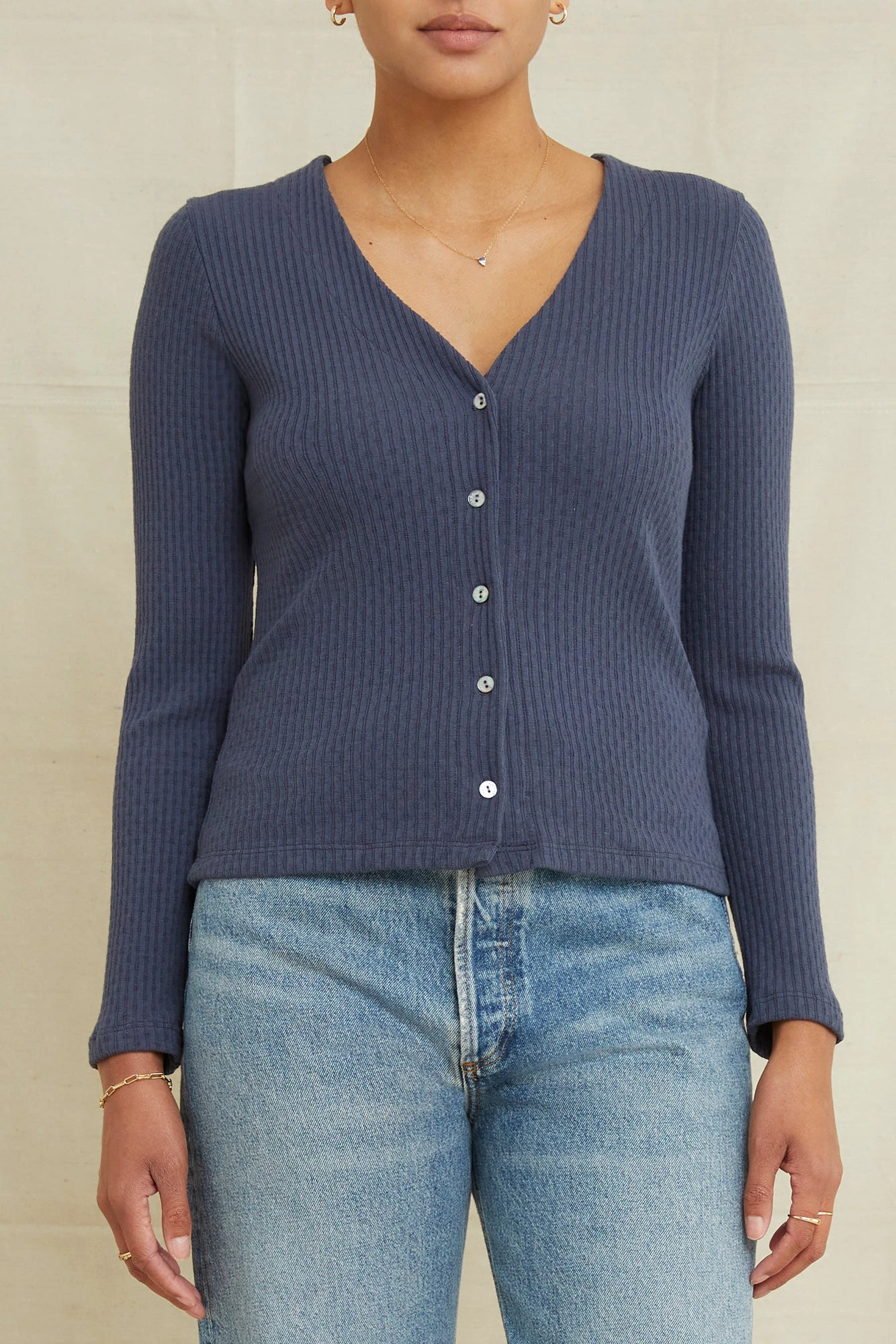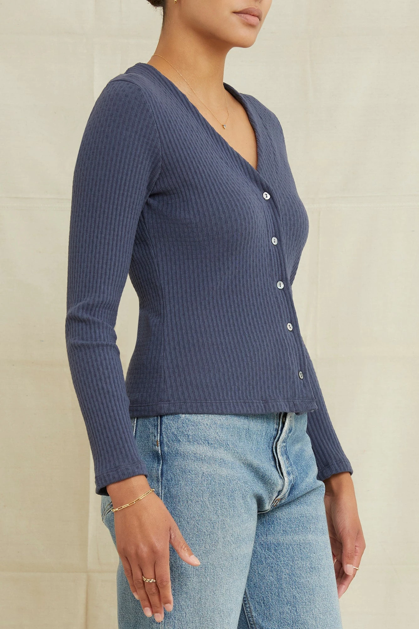 Bridgette Pointelle Rib Cardigan – Pacific Blue