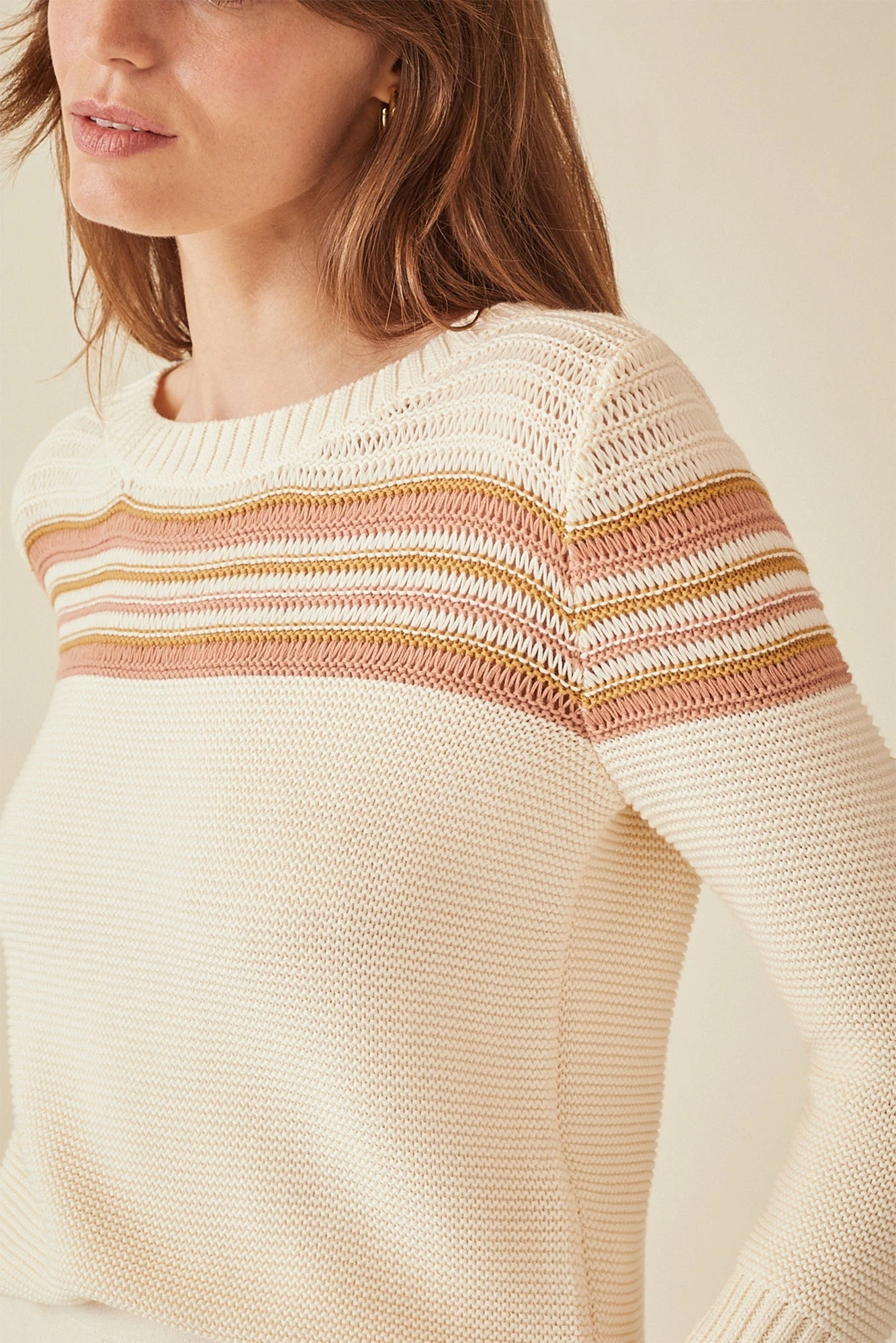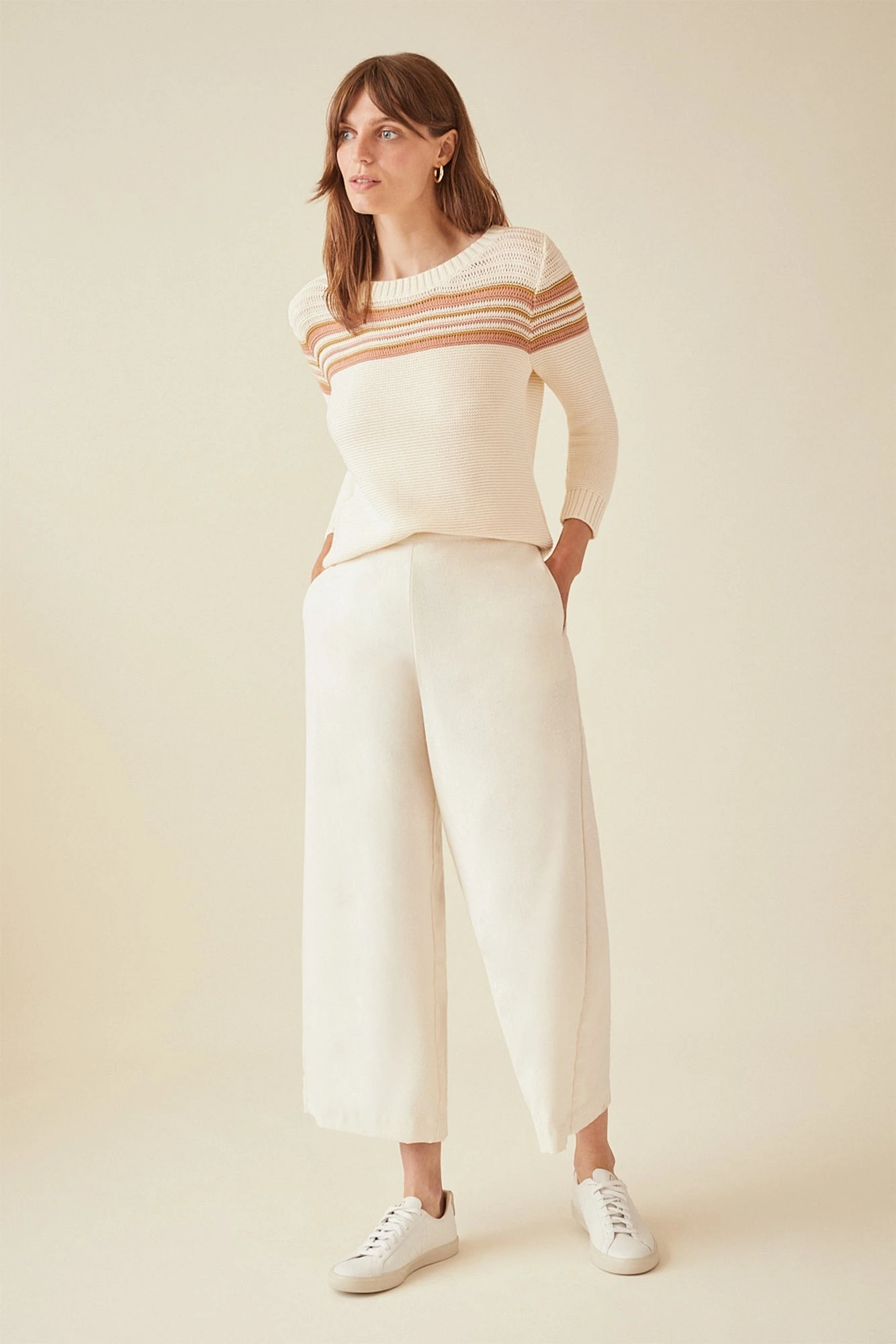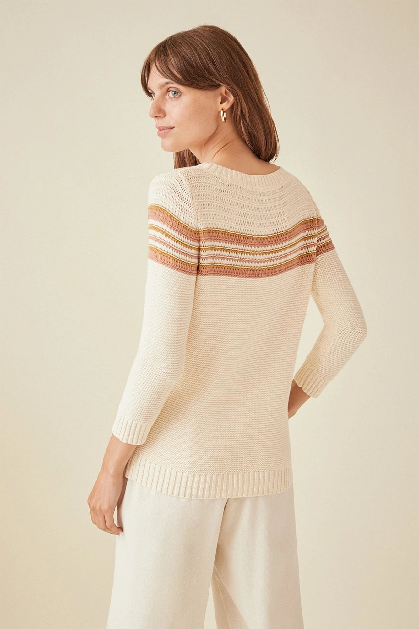 Lightweight pullover sweater with 3/4 length sleeves and a slimmer fit. This is a soft and breathable layering piece, made entirely from organic cotton.Â
