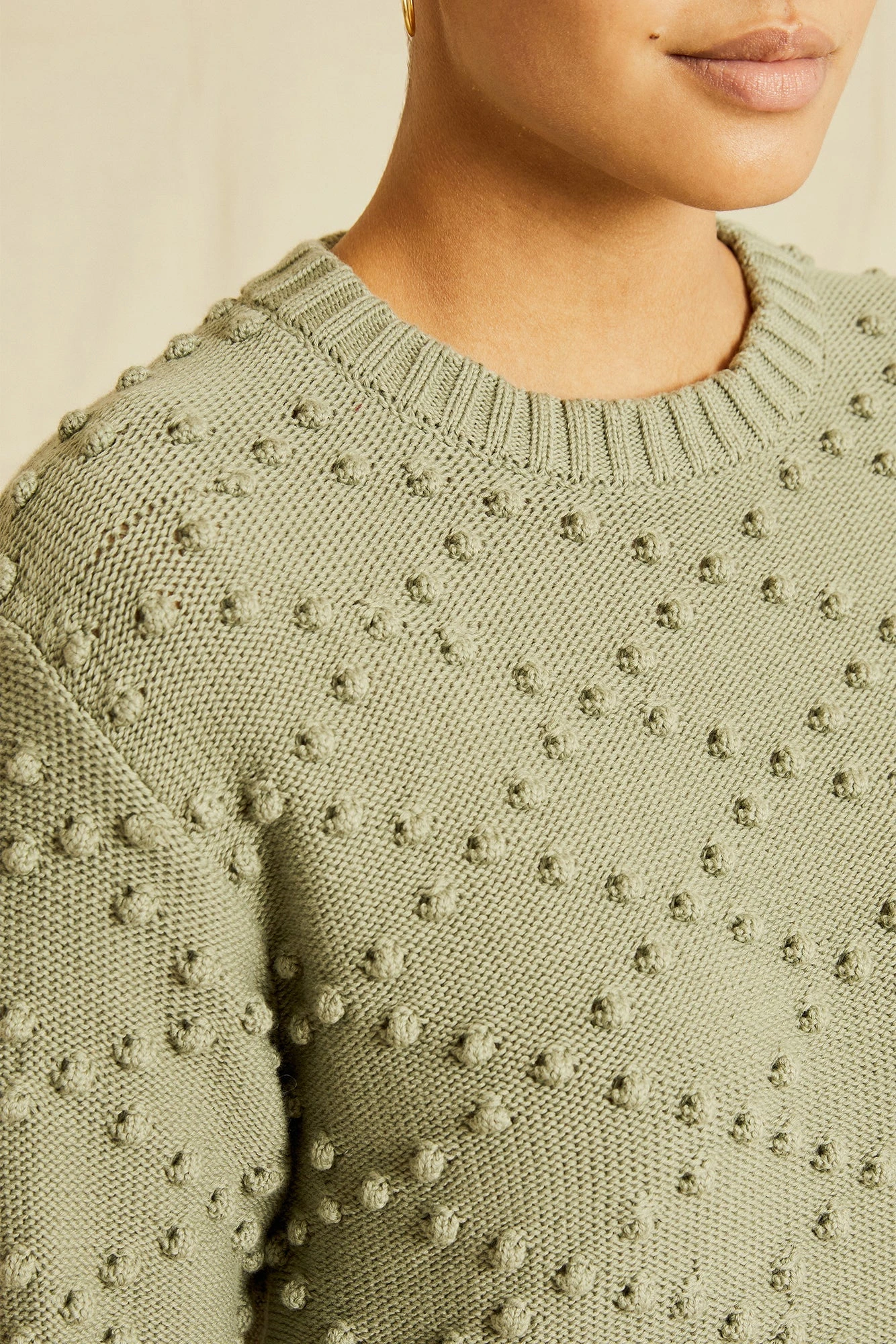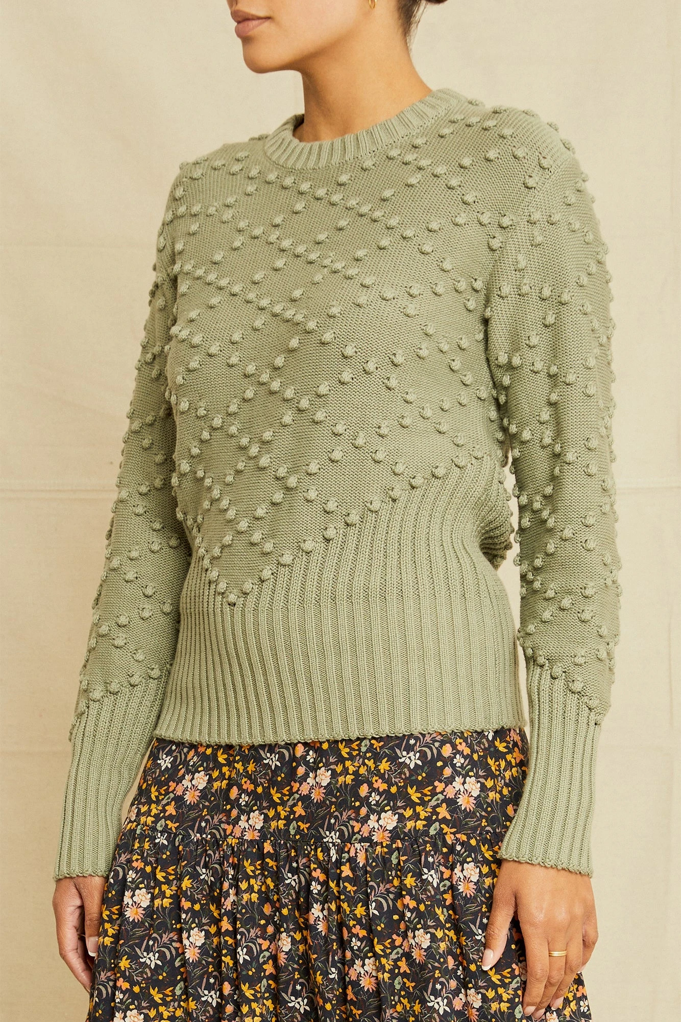 - Slim-fit, crewneck sweater featuring long puff sleeves and diamond pom pom detail, made from organic cotton in an entirely zero-waste process.