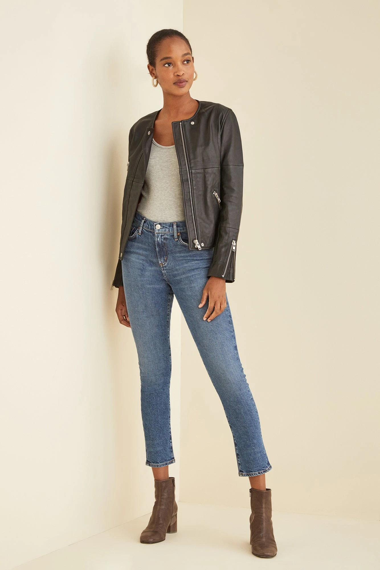 *Slight differences in the color and texture between jackets are a natural result of using recycled leather.