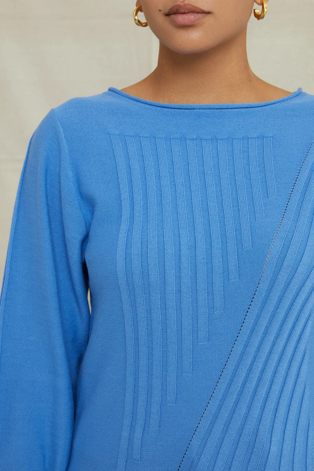 3/4 sleeve sweater with voluminous puff sleeves and geometric stitching at the front. Made from our soft and lightweight organic cotton, perfect for layering.