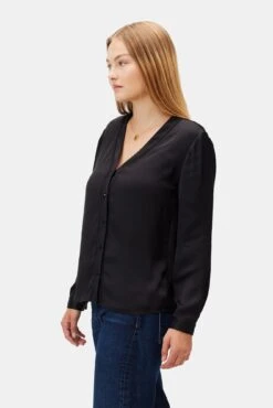 - Mid gauge cashmere cardigan featuring long sleeve, v-neck with button front, and rib stitch detail around the shoulders.