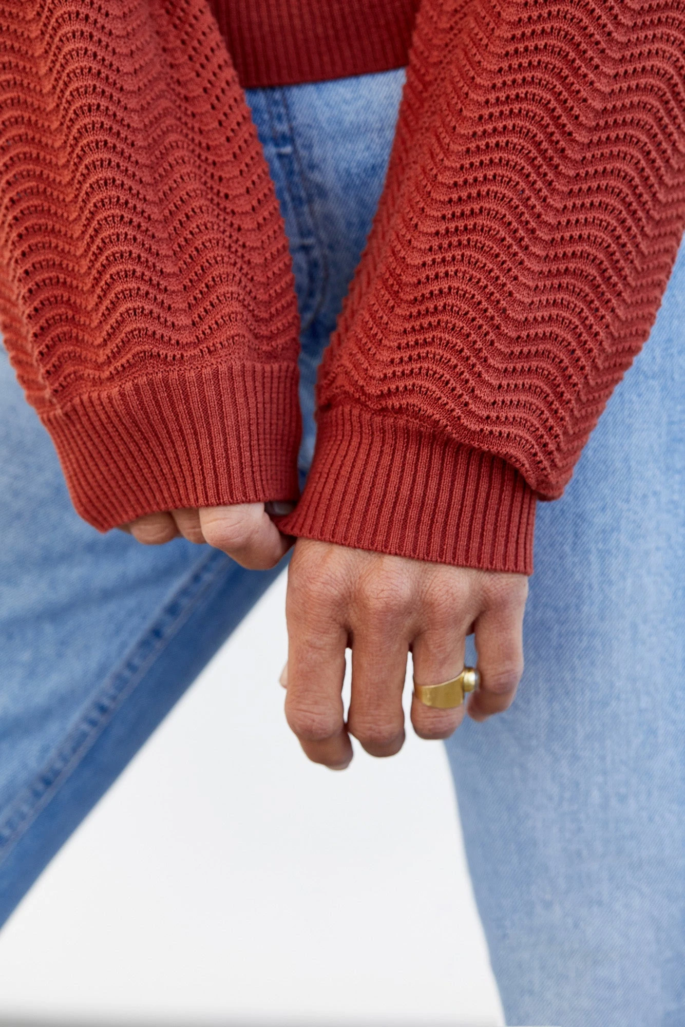 Lightweight and airy pullover sweater with wave stitching, made from our softest Organic Cotton.Â