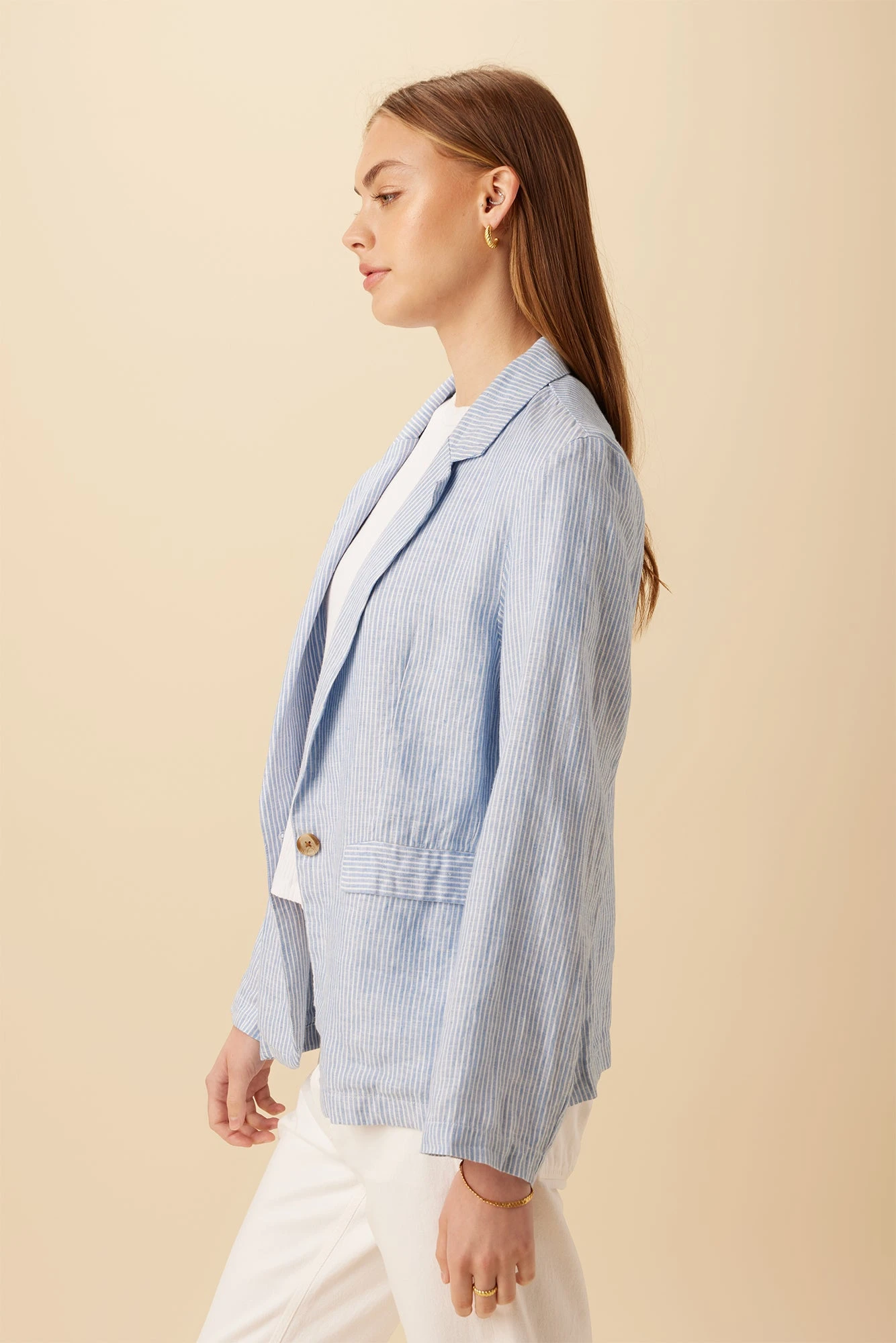 Be the first to review “Tobie Linen Blazer – Blue Natural Stripe” Cancel reply