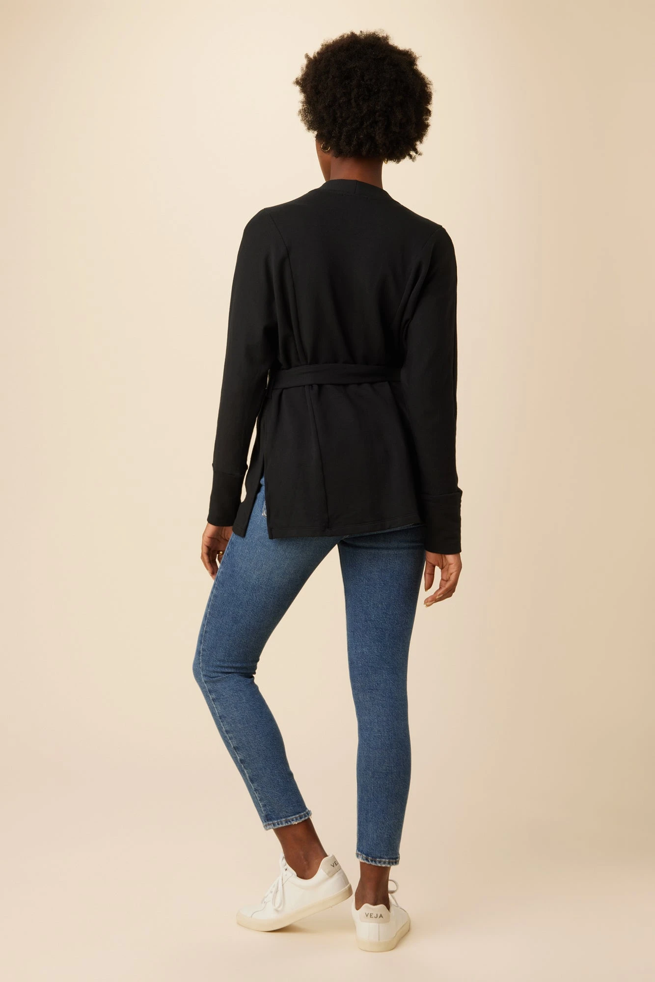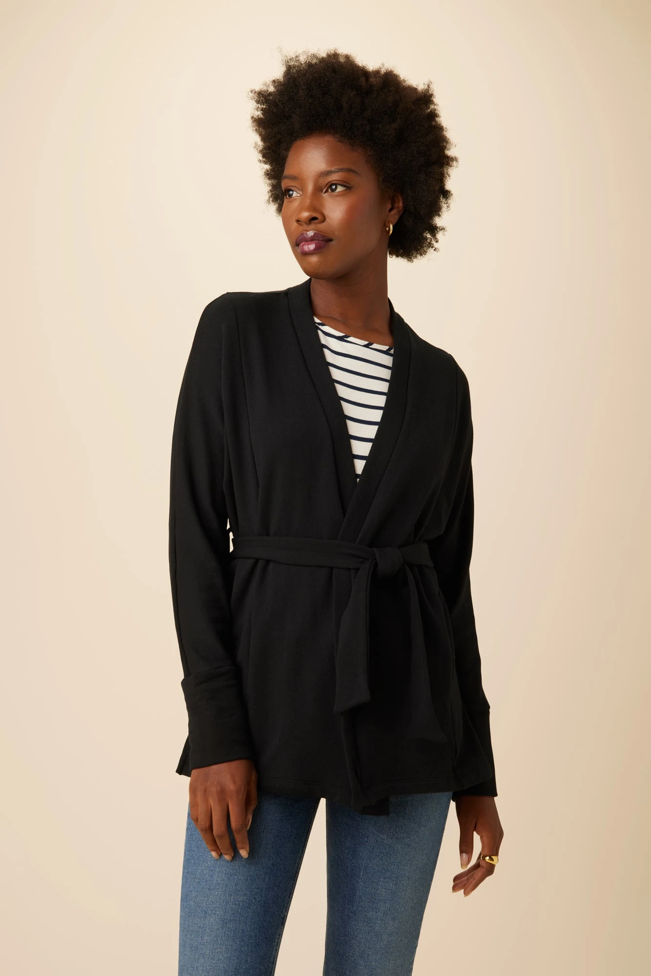 Relaxed fit cardigan with a removable tie-waist belt, fitted cuffs and pockets. Made in our impossibly soft Luxe Fleece, a luxe blend of Modal and Organic Cotton.